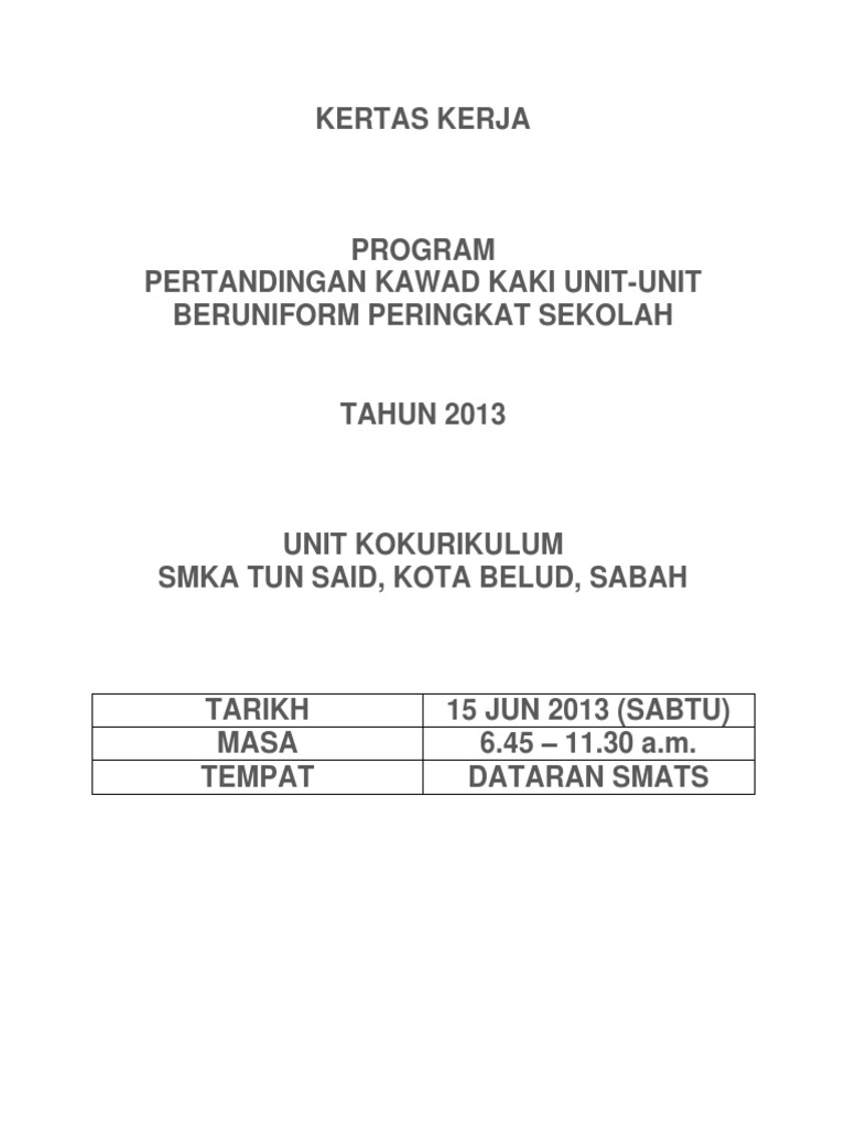 Kertas Kerja Pertandingan Kawad Kaki Unit Beruniform