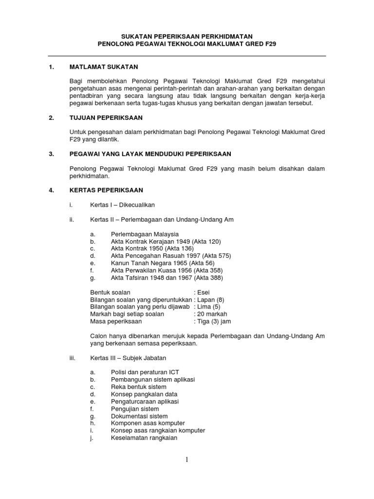 Sukatan Peperiksaan An Penolong Pegawai Teknologi Maklumat F29